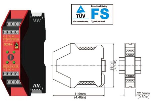 “Reliable safety monitoring relay with adjustable time delay feature.”