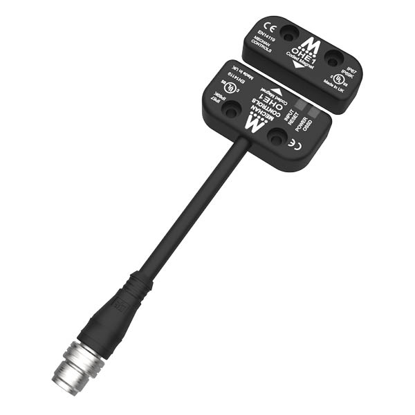 Housing:Black ABS, Resin EncapsulatedContacts:2 OSSD + 1NC (with door open)Contact Rating:2Amp – 24VDCCoding:Magnetically CodedIndication:Dual RGB (Advanced Diagnostics)Ingress Protection Rating:IP67 and (IP69K: Pre-Wired Only)OHE1 are standalone, non-contact safety switches. With 2 OSSD safety outputs and 1NC contact, capable of switching 2A at 24Vdc. The OHE1 is magnetically coded and the OSSD outputs are suitable for series connection up to 30off, maintaining PL-e.The OHE1 includes dual RGB LEDs for advanced on-switch diagnostics and the overhanging design improves visibility in awkward mounting positions. The OHE1 safety switches are available with5-PIN,8-PIN and 12-PIN M12quick disconnect which are fully sealed and suitable for use in most wet / harsh environments.The O-Type switches can be used with a feaÂture called EDM (external device monitorÂing). This means you can monitor the state of contactors or safety relays in order to detect failure of the external device eliminating the need for a safety monitoring device.Request Quote